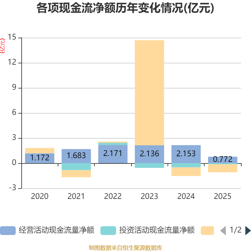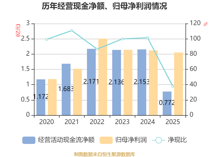 截至2025年,公司经营活动现金流净额为7718.44万元,同比下降64.15%;筹资活动现金流净额-9519.32万元,同比增加777.84万元;投资活动现金流净额-1375.33万元,上年同期为-5048.33万元。