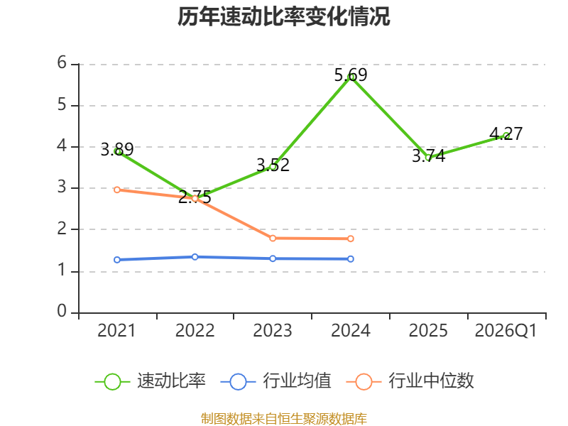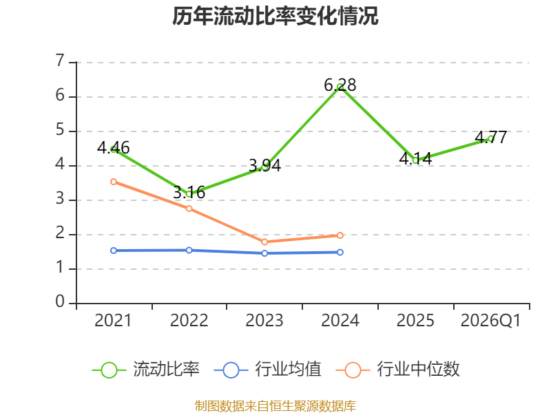 2026年第一季度,公司流动比率为4.77,速动比率为4.27。