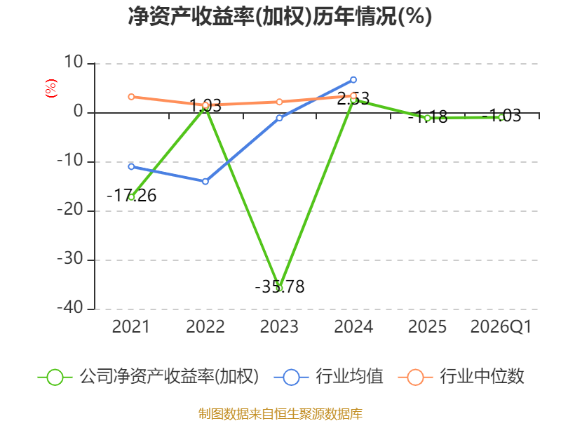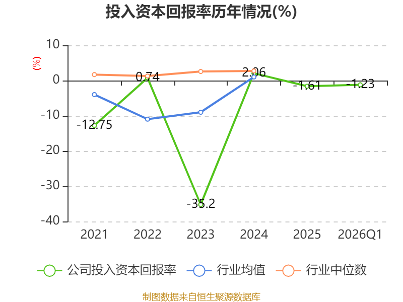 盈利能力方面, 2026年一季度公司加权平均净资产收益率为-1.03%,同比下降1.59个百分点。公司2026年第一季度投入资本回报率为-1.23%,较上年同期下降1.7个百分点。