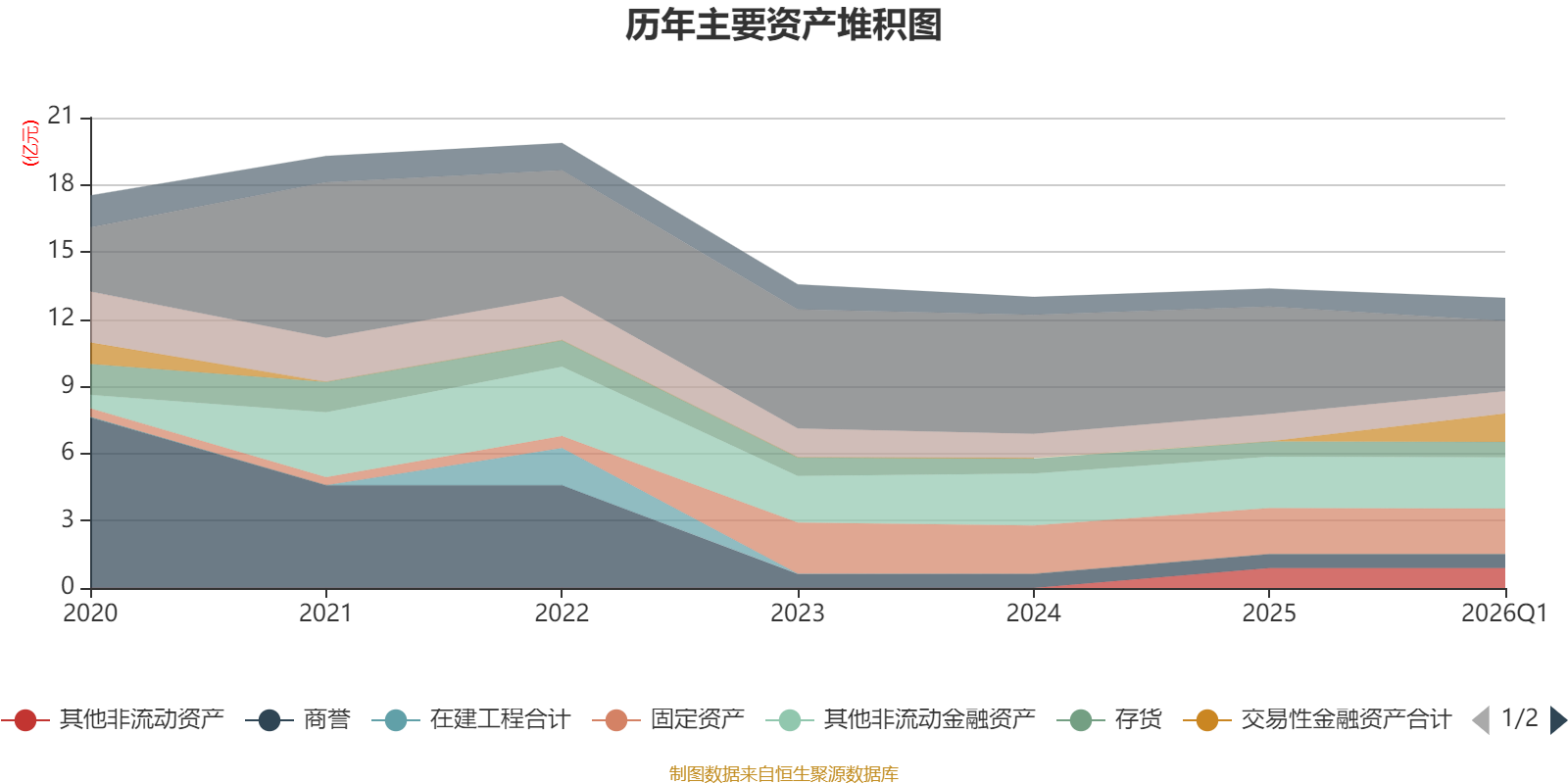 资产重大变化方面,截至2026年一季度末,公司货币资金较上年末减少34.67%,占公司总资产比重下降11.69个百分点;交易性金融资产合计占公司总资产的9.81%,上年末为0;应收票据及应收账款较上年末减少18.79%,占公司总资产比重下降1.48个百分点;其他应收款(含利息和股利)较上年末增加364.13%,占公司总资产比重上升1.26个百分点。