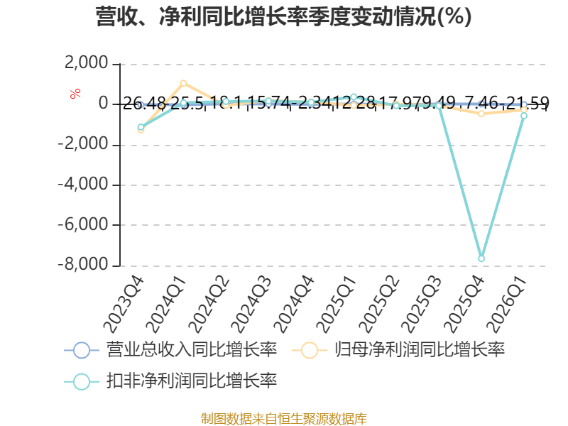 负债重大变化方面,截至2026年一季度末,公司应付票据及应付账款较上年末减少21.12%,占公司总资产比重下降1.05个百分点;短期借款较上年末增加54.89%,占公司总资产比重上升0.9个百分点;应付职工薪酬较上年末减少42.21%,占公司总资产比重下降0.84个百分点;合同负债较上年末减少30.2%,占公司总资产比重下降0.6个百分点。