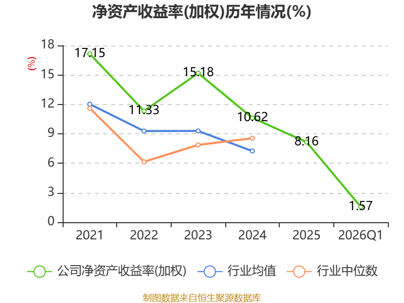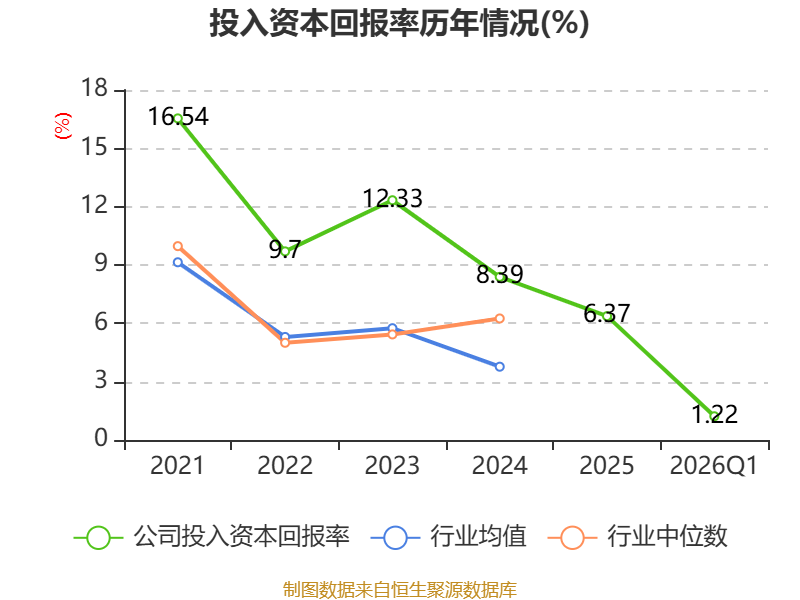 盈利能力方面, 2026年一季度公司加权平均净资产收益率为1.57%,同比上升0.21个百分点。公司2026年第一季度投入资本回报率为1.22%,较上年同期上升0.18个百分点。