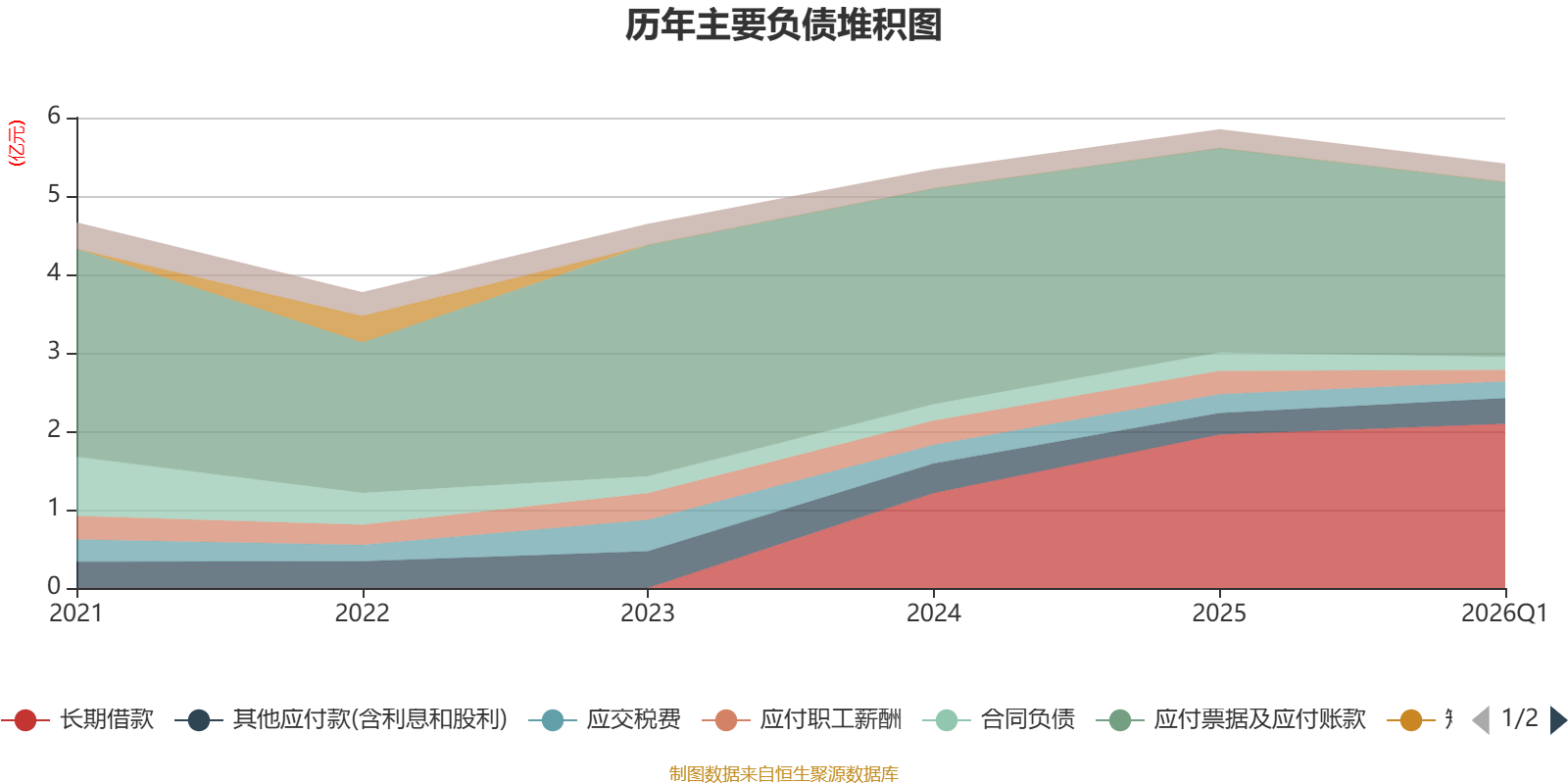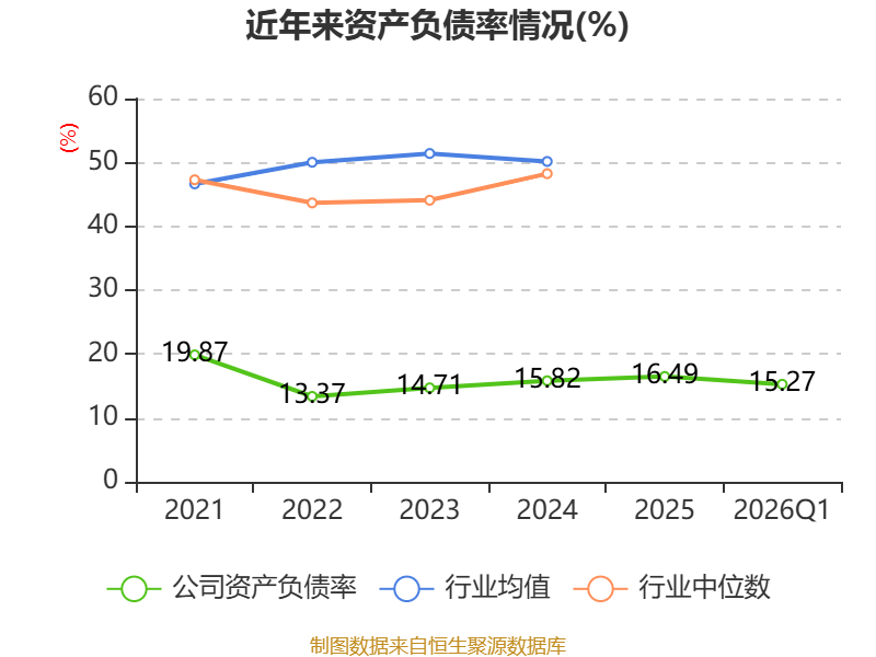 负债重大变化方面,截至2026年一季度末,公司应付票据及应付账款较上年末减少14.56%,占公司总资产比重下降1.07个百分点;应付职工薪酬较上年末减少49.95%,占公司总资产比重下降0.42个百分点;长期借款较上年末增加6.98%,占公司总资产比重上升0.39个百分点;合同负债较上年末减少28.81%,占公司总资产比重下降0.19个百分点。