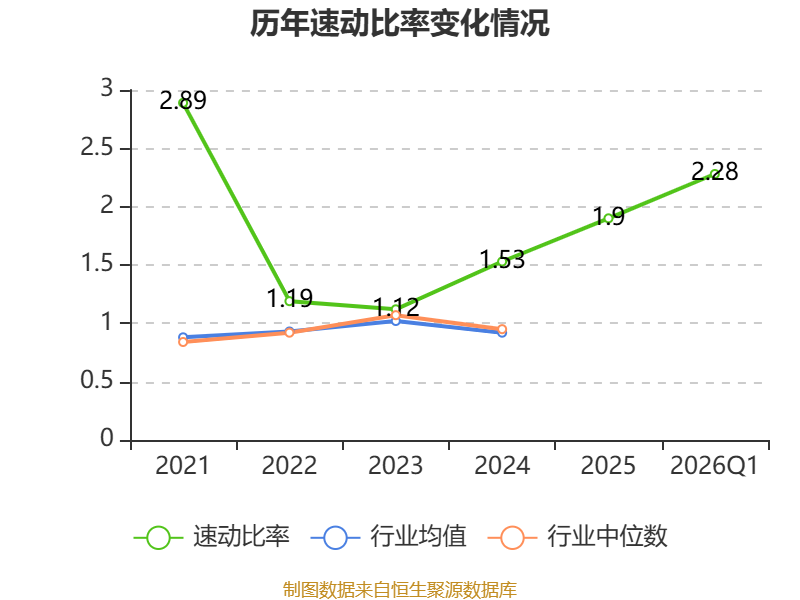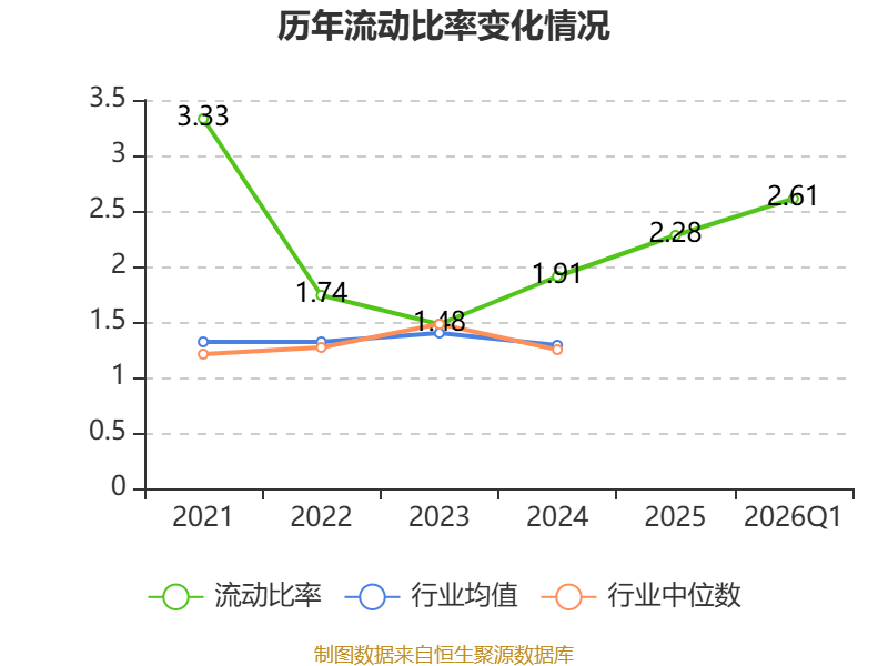 2026年第一季度,公司流动比率为2.61,速动比率为2.28。