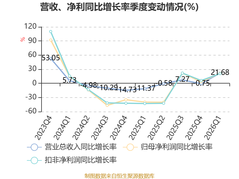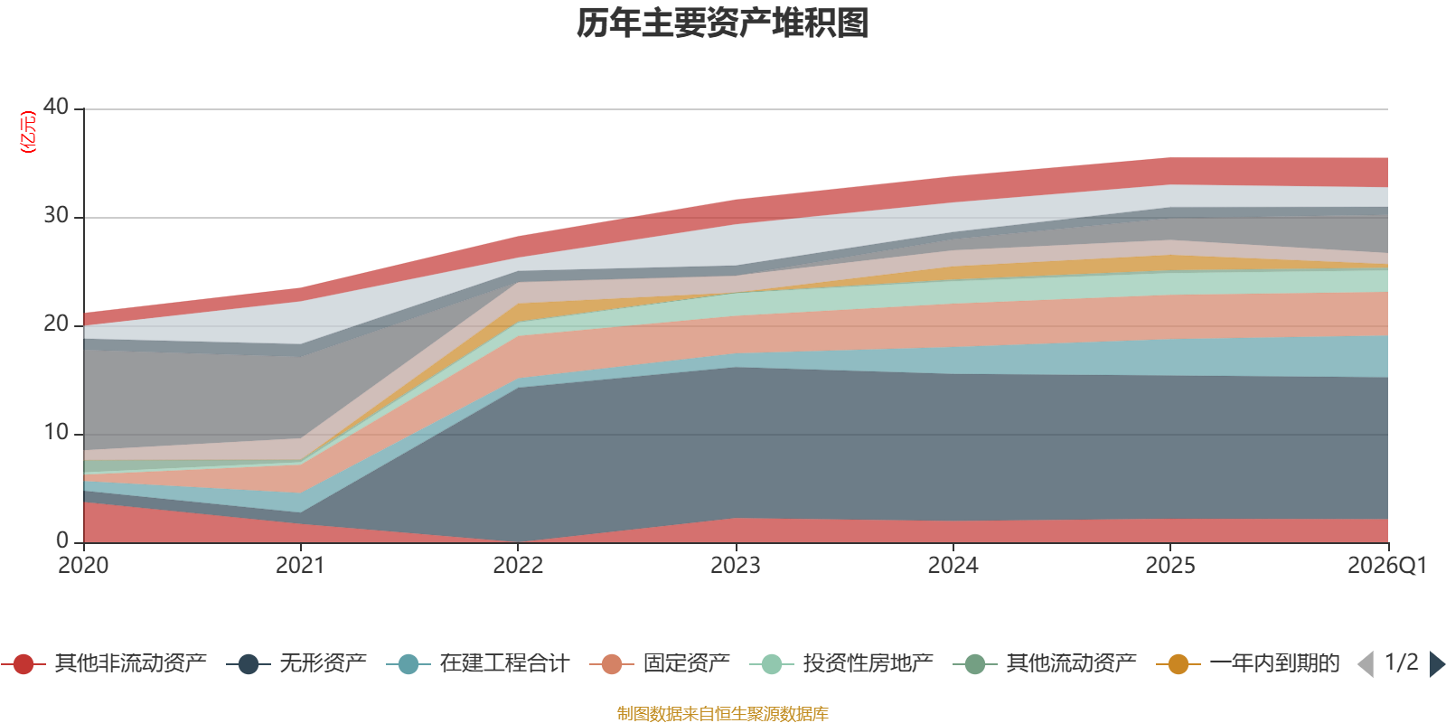 资产重大变化方面,截至2026年一季度末,公司交易性金融资产合计较上年末增加75.45%,占公司总资产比重上升4.27个百分点;一年内到期的非流动资产较上年末减少77.01%,占公司总资产比重下降3.07个百分点;在建工程合计较上年末增加13.95%,占公司总资产比重上升1.33个百分点;存货较上年末减少25.18%,占公司总资产比重下降0.97个百分点。
