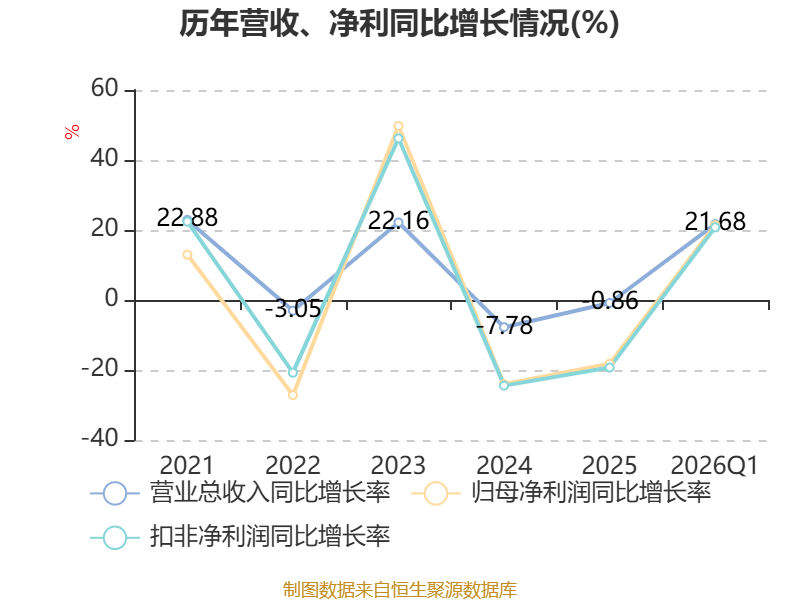 中证智能财讯好太太(603848)4月22日披露2026年第一季度报告。公司实现营业总收入3.15亿元,同比增长21.68%;归母净利润4063.2万元,同比增长21.37%;扣非净利润3821.84万元,同比增长20.76%;经营活动产生的现金流量净额为3719.14万元,上年同期为-7786.24万元;报告期内,好太太基本每股收益为0.1元,加权平均净资产收益率为1.57%。