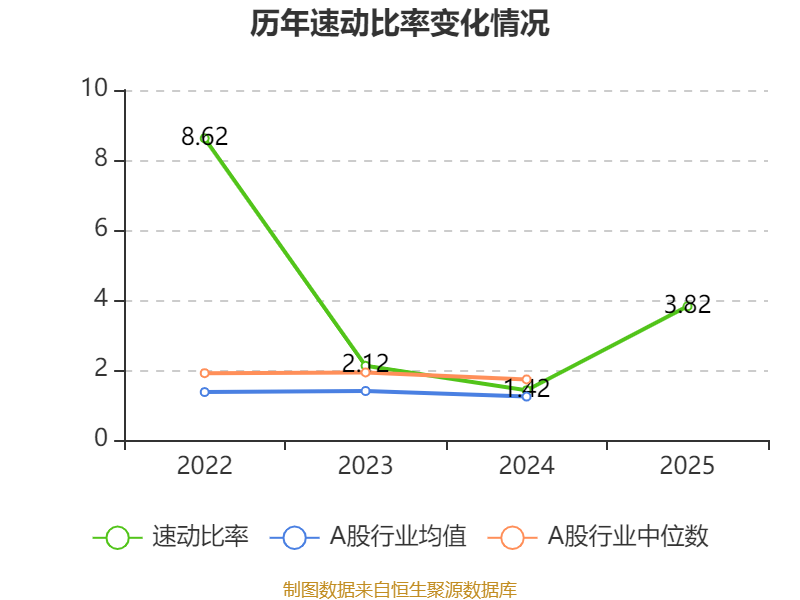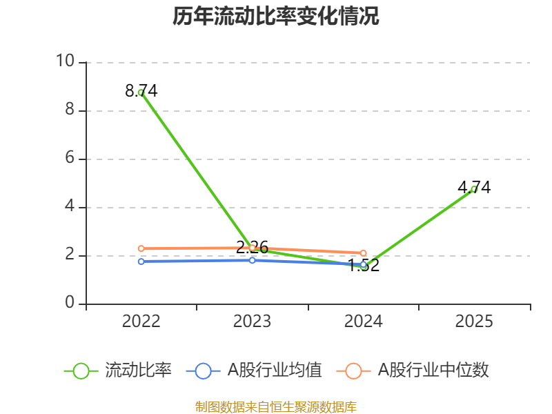 2025年,公司流动比率为4.74,速动比率为3.82。
