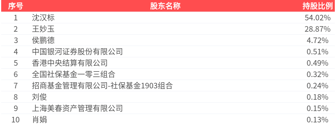 公司股东户数为1.14万户,前十大股东持股数量为3.61亿股,占总股本比例为89.63%,前十大股东持股情况如下: