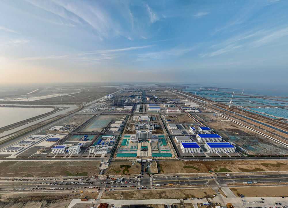 走进中国石油全资控股的蓝海新材料(通州湾)有限责任公司,不同于人们印象中烟囱林立、管道纵横的传统炼化厂,这里总体规划的15套生产装置整齐沿通州湾深水岸线错落排开,如从滩涂上拔地而起的现代化“钢铁矩阵”。