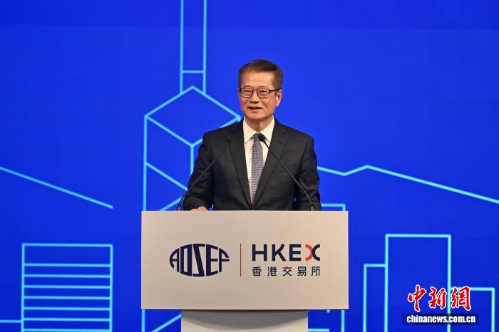 4月22日上午,由香港交易及结算所有限公司(简称“港交所”)主办的第40届亚洲及大洋洲证券交易所联合年会在香港金融大会堂举行。图为香港特区政府财政司司长陈茂波致辞。中新社记者李志华摄