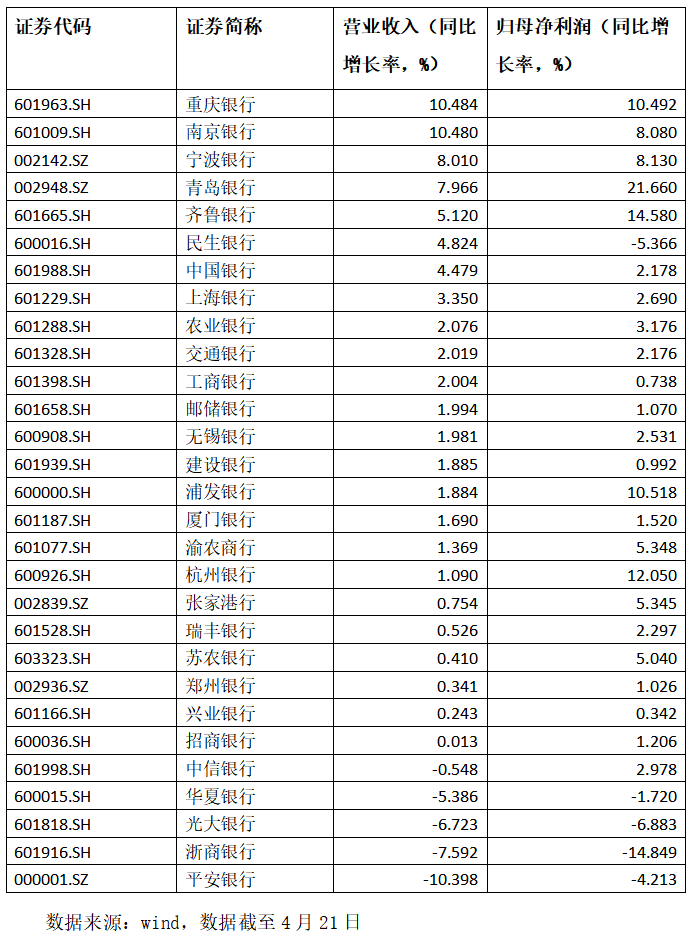 表1 重庆银行2025年营收净利增速领跑上市银行