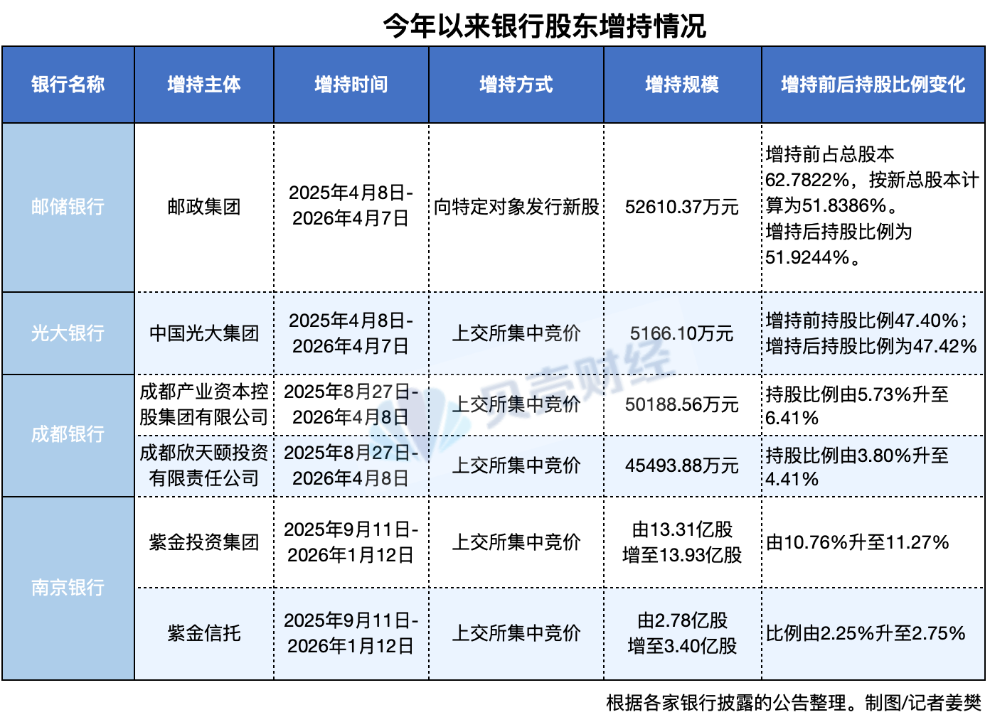 国资股东“豪掷”资金,年内多家银行股东增持超15亿元。