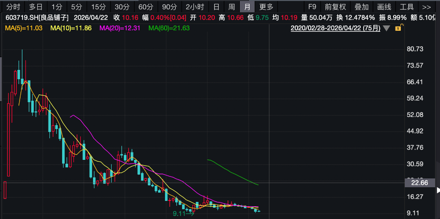 上市后,良品铺子的表现确实不负众望,股价一路攀升。2020年7月,其股价触及历史高点80.73元(前复权),市值超过300亿元。彼时的良品铺子,被视为中国消费升级浪潮中的标杆企业。