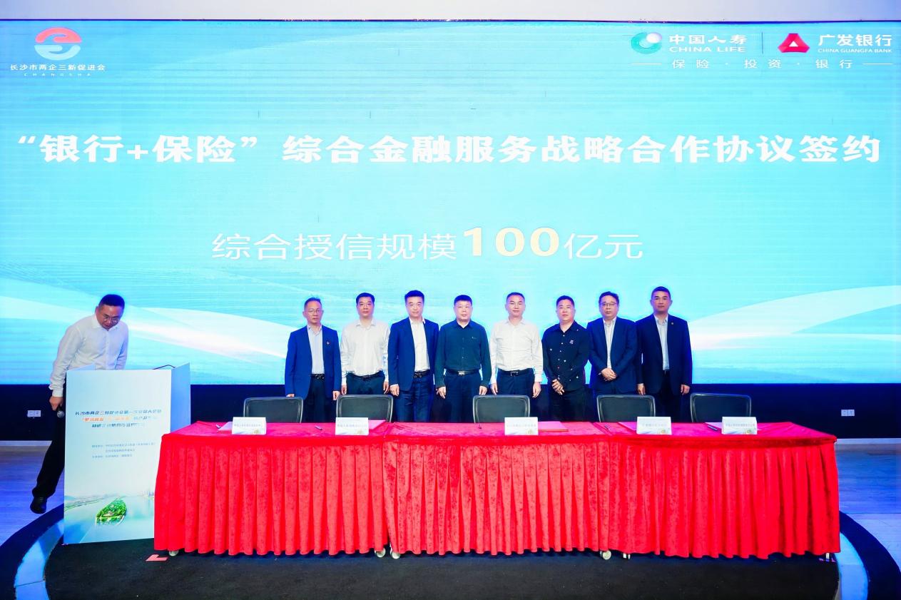 广发银行长沙分行、中国人寿湖南省分公司、中国人寿财险湖南省分公司、中国人寿养老险湖南省中心等中国人寿驻湘单位发挥党建引领作用与综合金融优势,构建“金融+保障”全方位服务体系,100亿元授信总额度精准赋能长沙“两企三新”,为企业稳健经营、人才发展提供坚实支撑。同时,广发银行长沙分行还与13家企业现场签订授信合作协议,提供18亿元专项金融支持,精准破解企业融资难题,从资金支持到风险保障,从产业协同到资源对接,一场活动串联起创新、产业、资本、服务全链条,让企业真切感受到长沙优化营商环境的力度与温度。