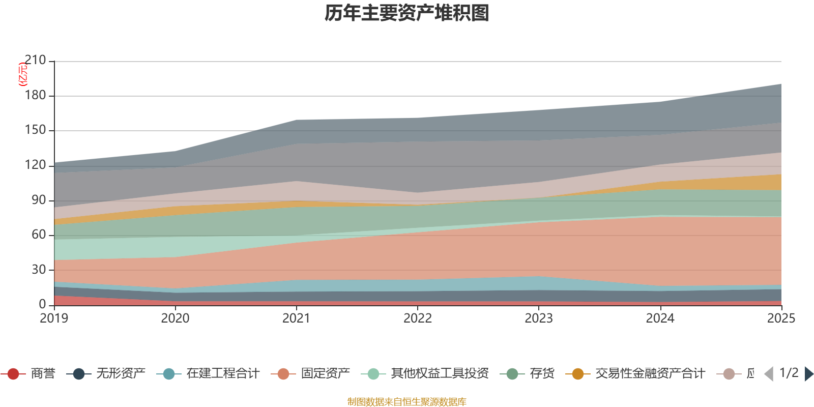 资产重大变化方面,截至2025年末,公司固定资产较上年末减少2.05%,占公司总资产比重下降3.39个百分点;交易性金融资产合计较上年末增加105.62%,占公司总资产比重上升3.37个百分点;应收票据及应收账款较上年末增加26.63%,占公司总资产比重上升1.38个百分点;其他流动资产较上年末增加102.7%,占公司总资产比重上升1.13个百分点。