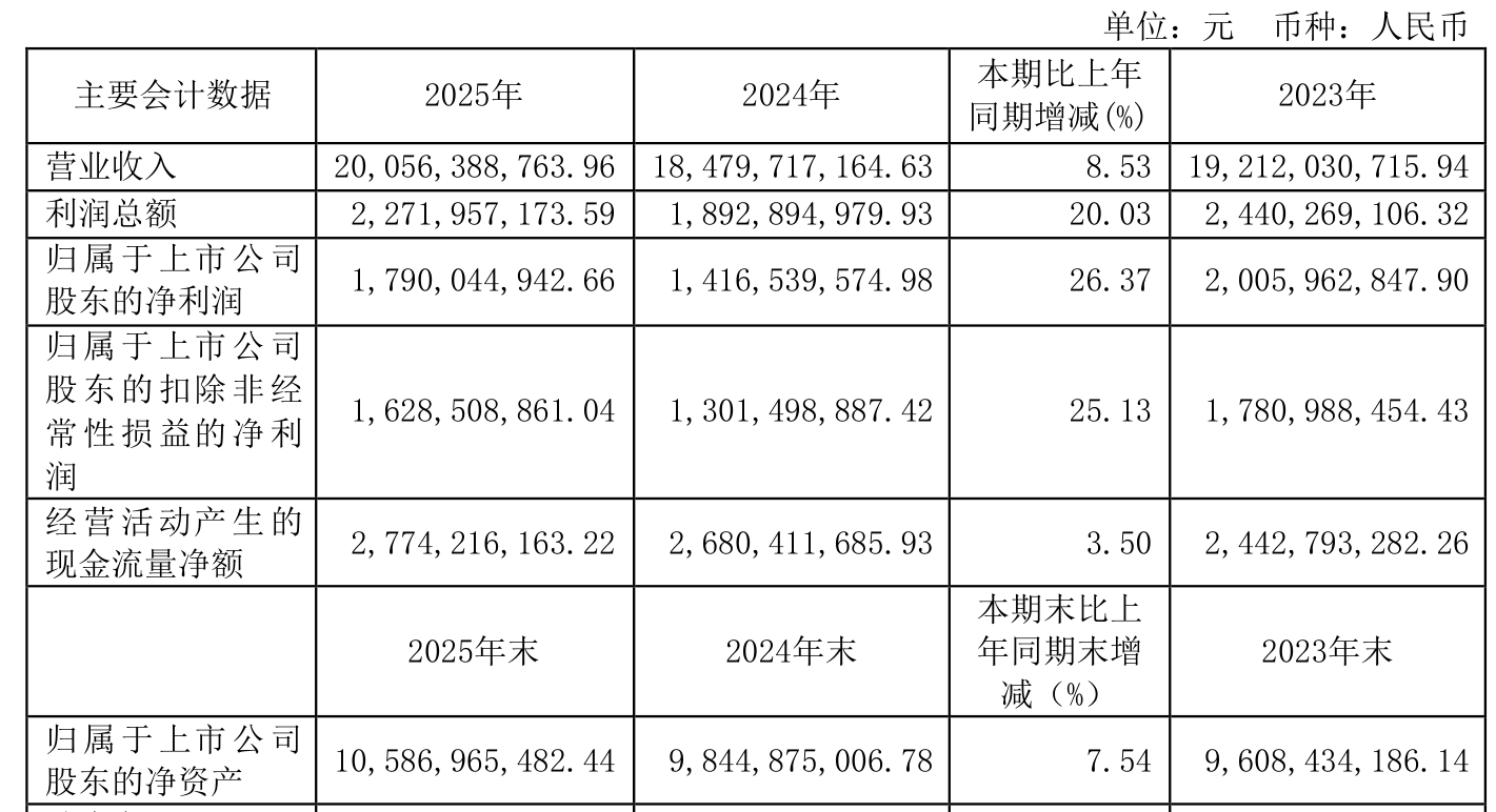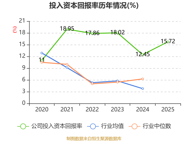 数据显示,2025年公司加权平均净资产收益率为17.68%,较上年同期上升2.96个百分点。公司2025年投入资本回报率为15.72%,较上年同期上升3.27个百分点。