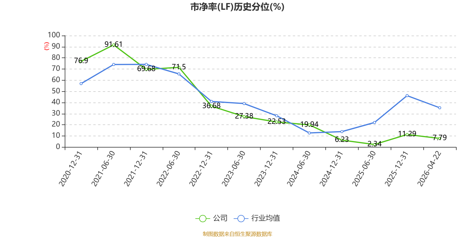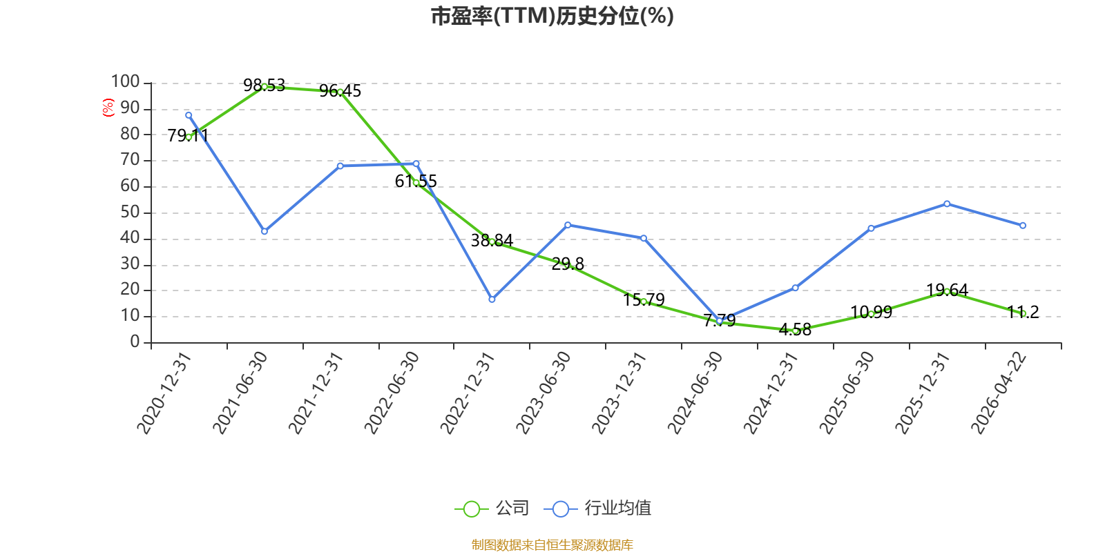 市盈率、市净率为负时,不显示当期分位数,会导致折线图中断。