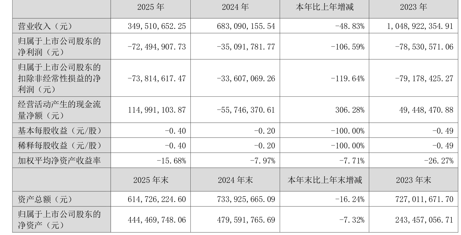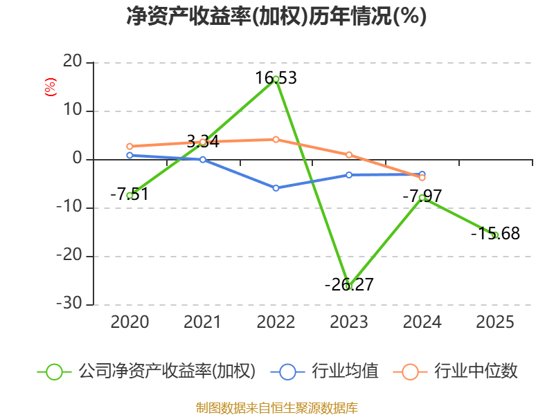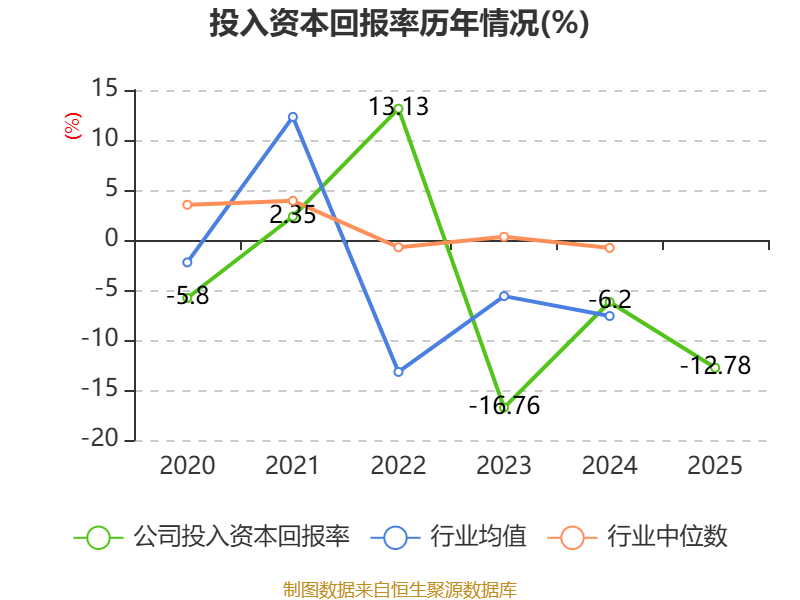 数据显示,2025年公司加权平均净资产收益率为-15.68%,较上年同期下降7.71个百分点。公司2025年投入资本回报率为-12.78%,较上年同期下降6.58个百分点。