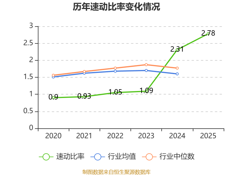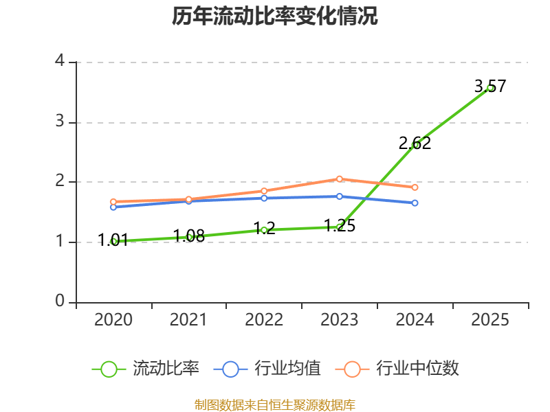 2025年,公司流动比率为3.57,速动比率为2.78。