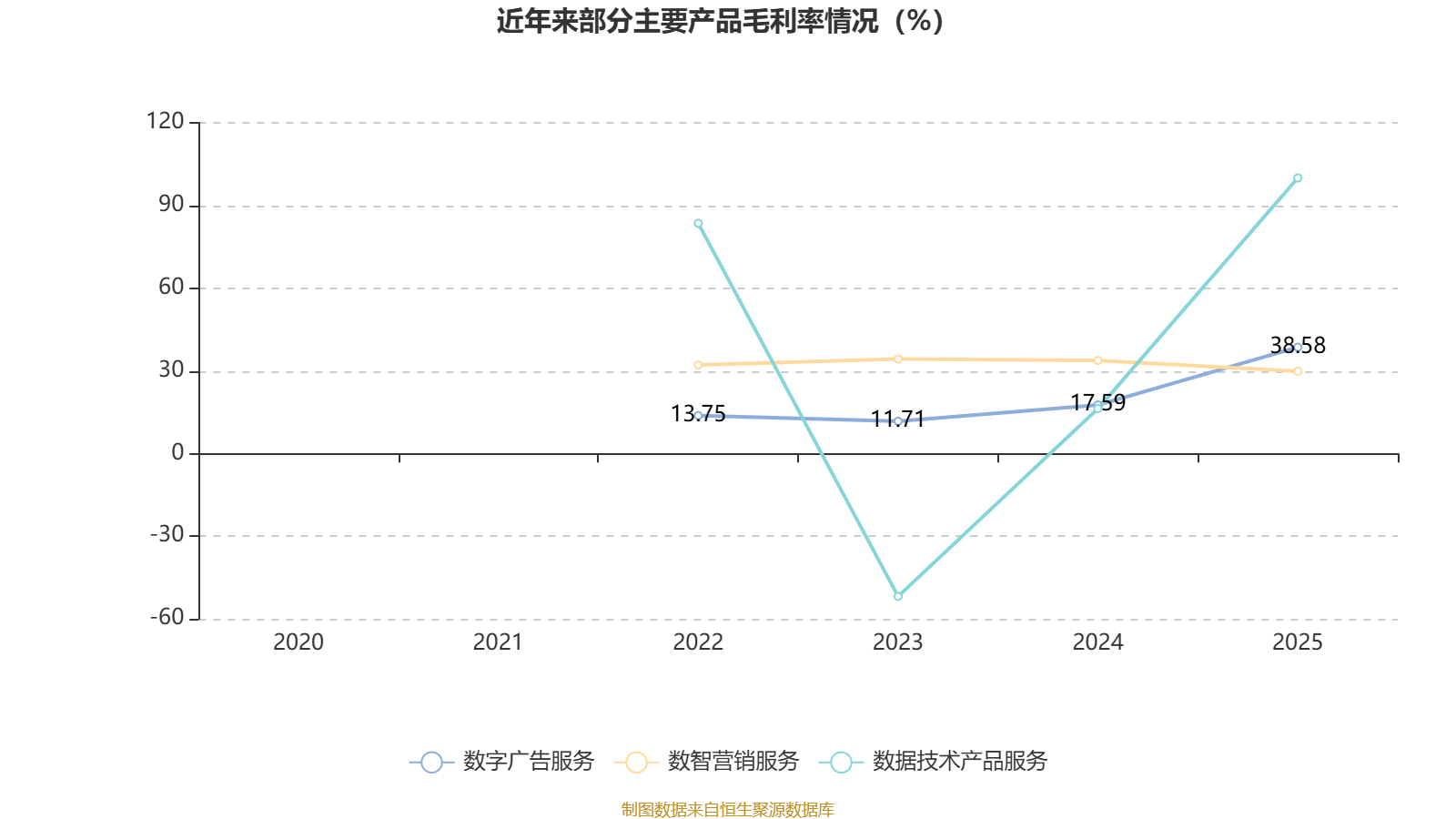 资料显示,公司的主营业务主要划分为:数智营销服务、数字广告服务、数据技术产品服务。