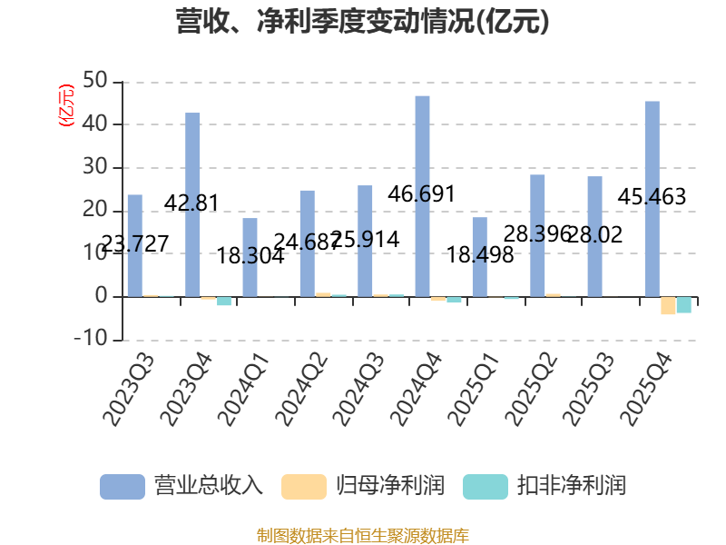 从存货变动来看,截至2025年末,公司存货账面价值为41.53亿元,占净资产的46.06%,较上年末减少2.34亿元。其中,存货跌价准备为2.04亿元,计提比例为4.69%。