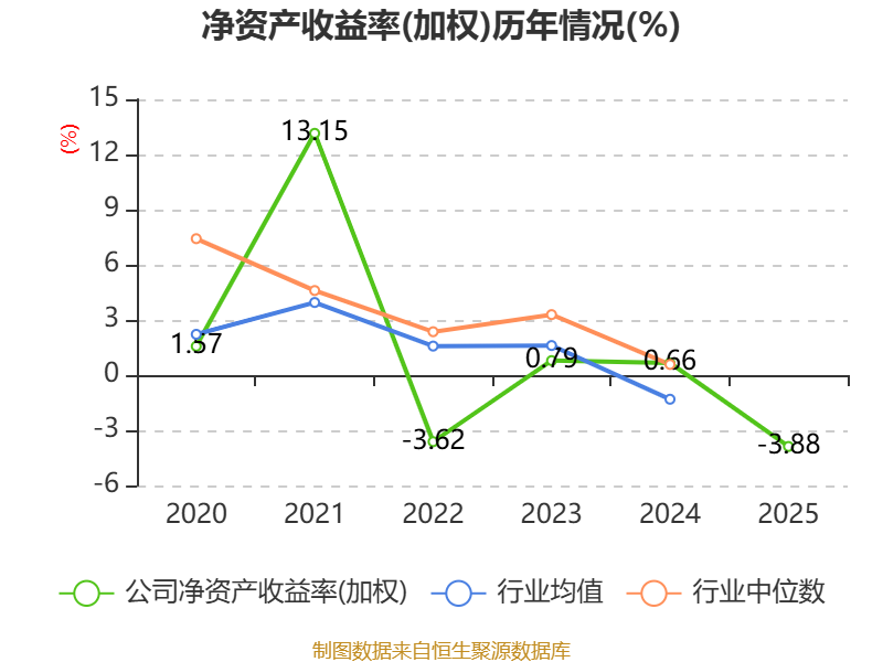 数据显示,2025年公司加权平均净资产收益率为-3.88%,较上年同期下降4.54个百分点。公司2025年投入资本回报率为-3.09%,较上年同期下降3.68个百分点。