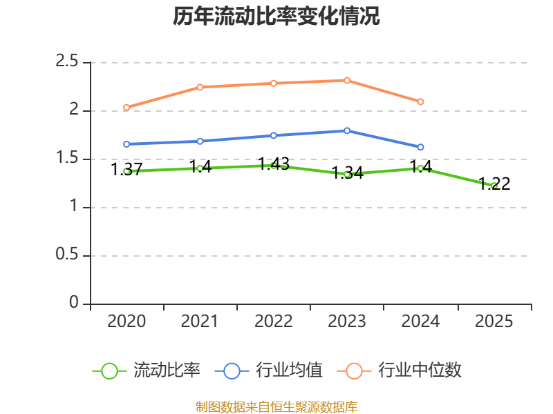 2025年,公司流动比率为1.22,速动比率为0.73。