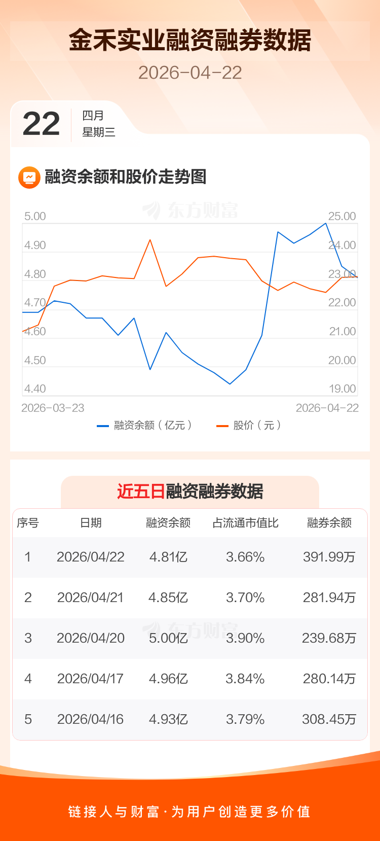 交易所最新数据显示,金禾实业于2026年4月22日获融资买入2471.35万元,融资偿还2899.19万元,当日融资净偿还427.84万元。目前,该股融资余额4.81亿,占流通市值比例为3.66%。