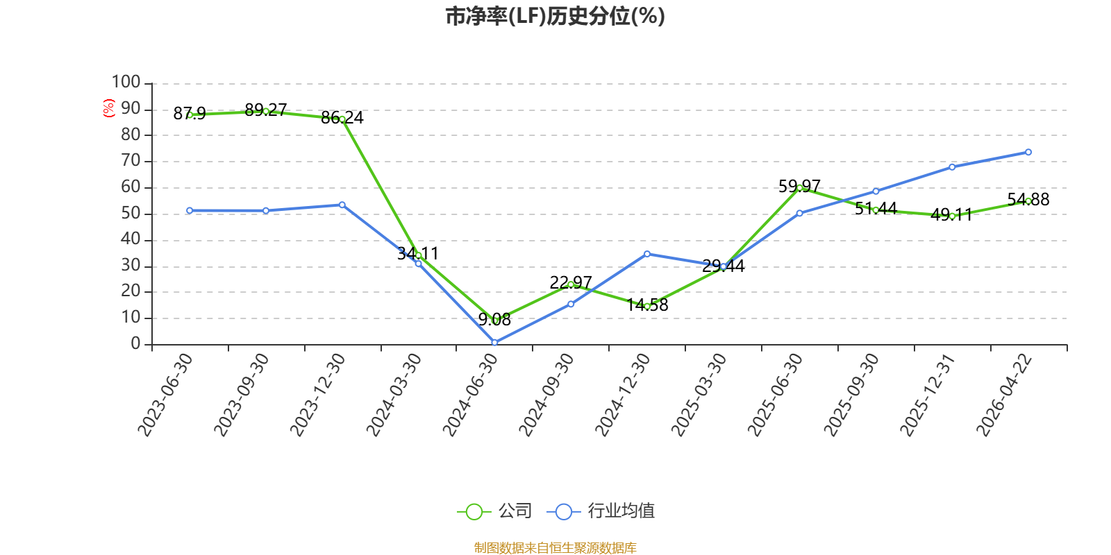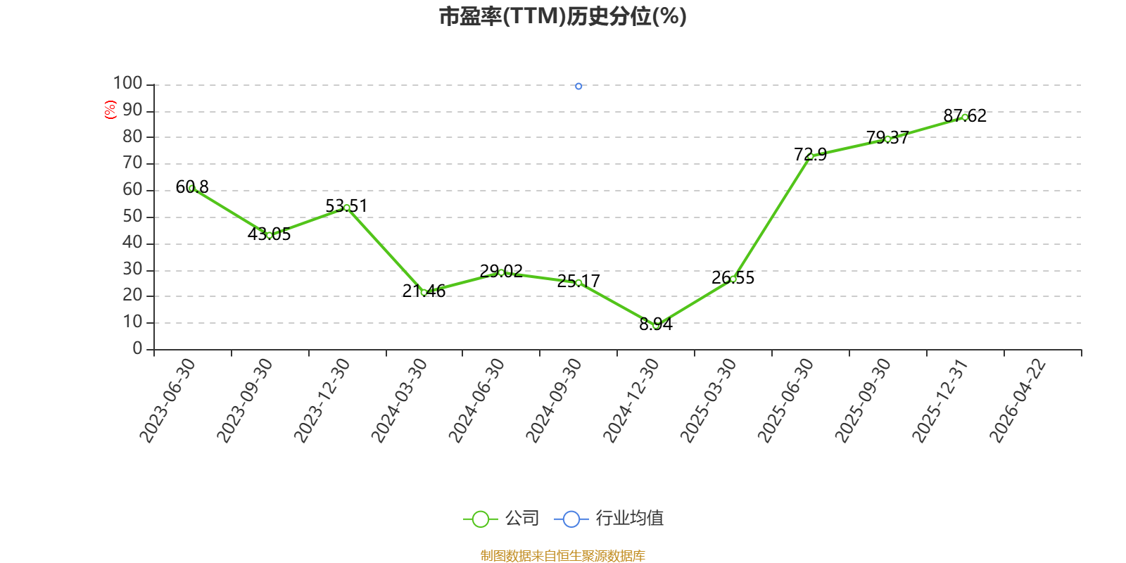 市盈率、市净率为负时,不显示当期分位数,会导致折线图中断。