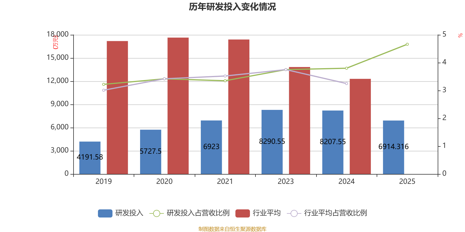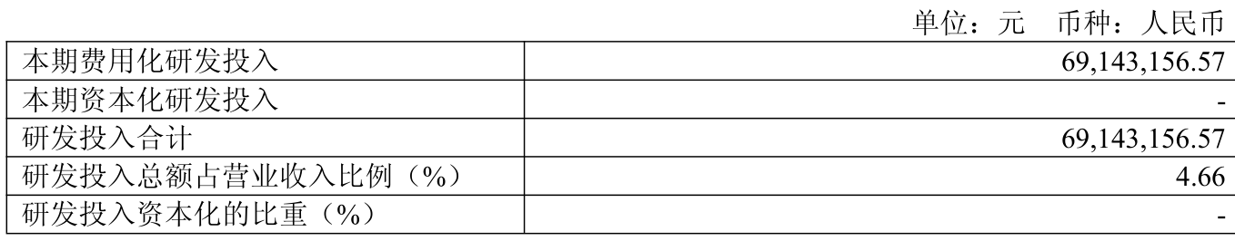 2025年全年,公司研发投入金额为6914.32万元,同比下降15.76%;研发投入占营业收入比例为4.66%,相比上年同期上升0.86个百分点。此外,公司全年研发投入资本化率为0%。