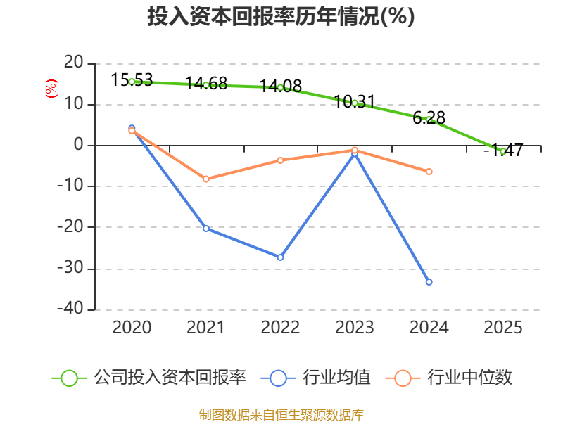 数据显示,2025年公司加权平均净资产收益率为-2.96%,较上年同期下降10.92个百分点。公司2025年投入资本回报率为-1.47%,较上年同期下降7.75个百分点。