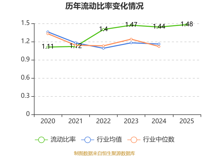 2025年,公司流动比率为1.48,速动比率为1.46。