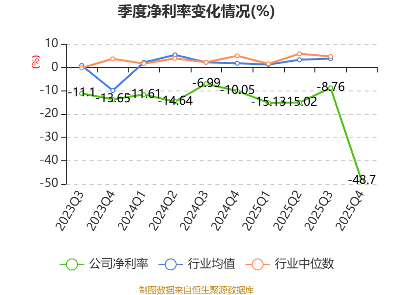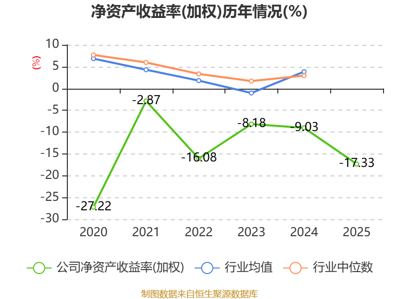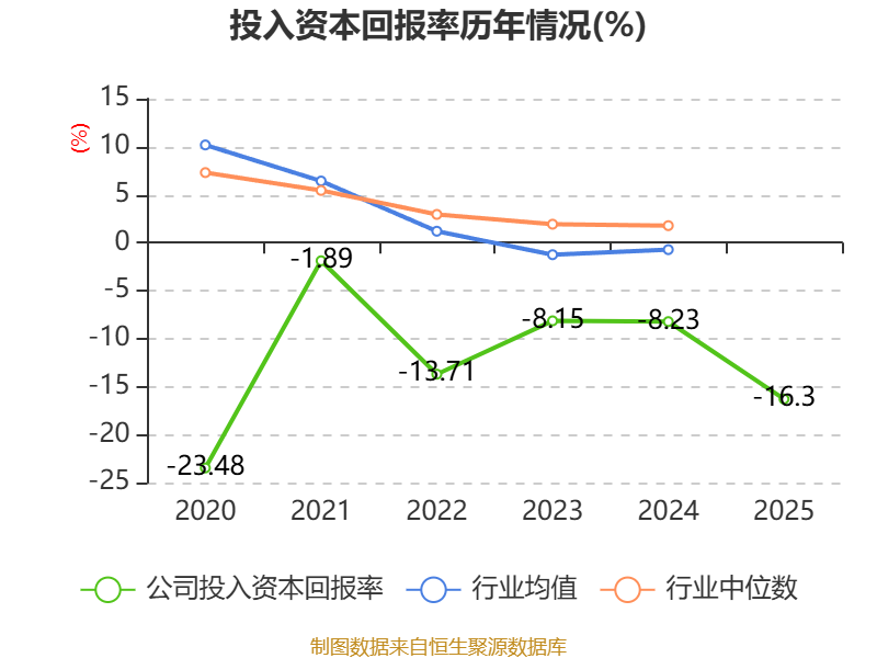 数据显示,2025年公司加权平均净资产收益率为-17.33%,较上年同期下降8.3个百分点。公司2025年投入资本回报率为-16.3%,较上年同期下降8.07个百分点。