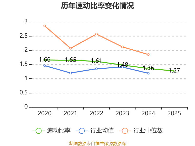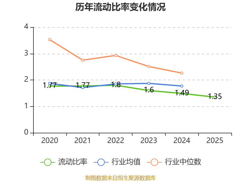 2025年,公司流动比率为1.35,速动比率为1.27。