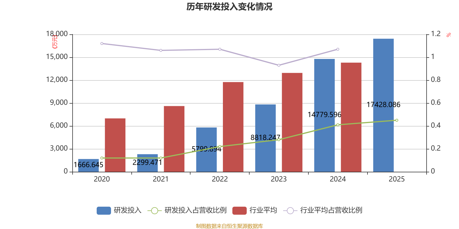 2025年全年,公司研发投入金额为1.74亿元,同比增长17.92%;研发投入占营业收入比例为0.45%,相比上年同期上升0.04个百分点。此外,公司全年研发投入资本化率为0%。