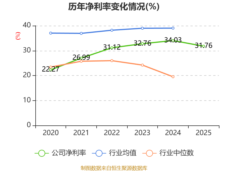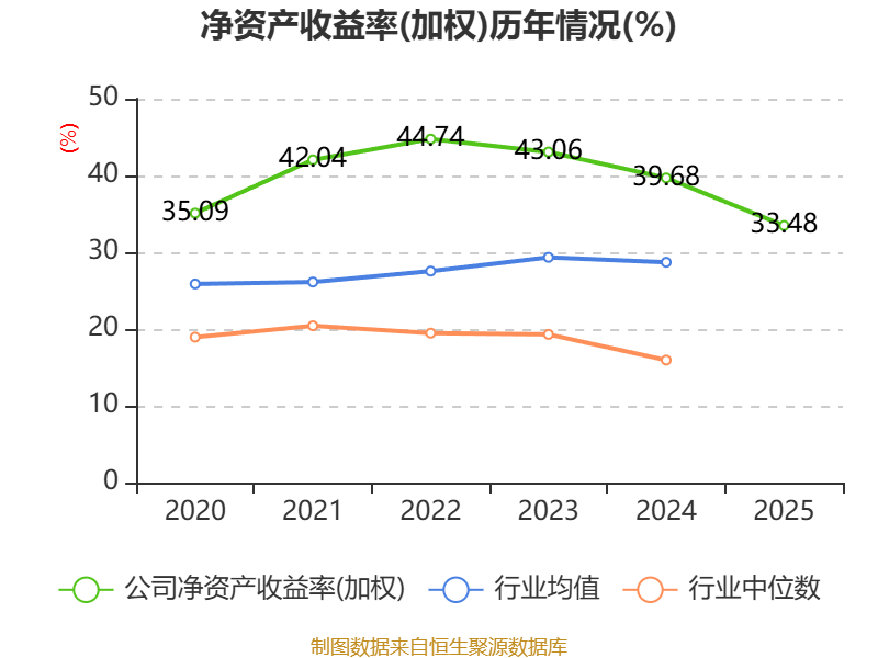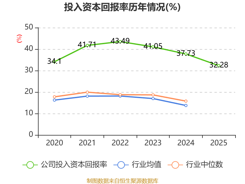 数据显示,2025年公司加权平均净资产收益率为33.48%,较上年同期下降6.2个百分点。公司2025年投入资本回报率为32.28%,较上年同期下降5.45个百分点。