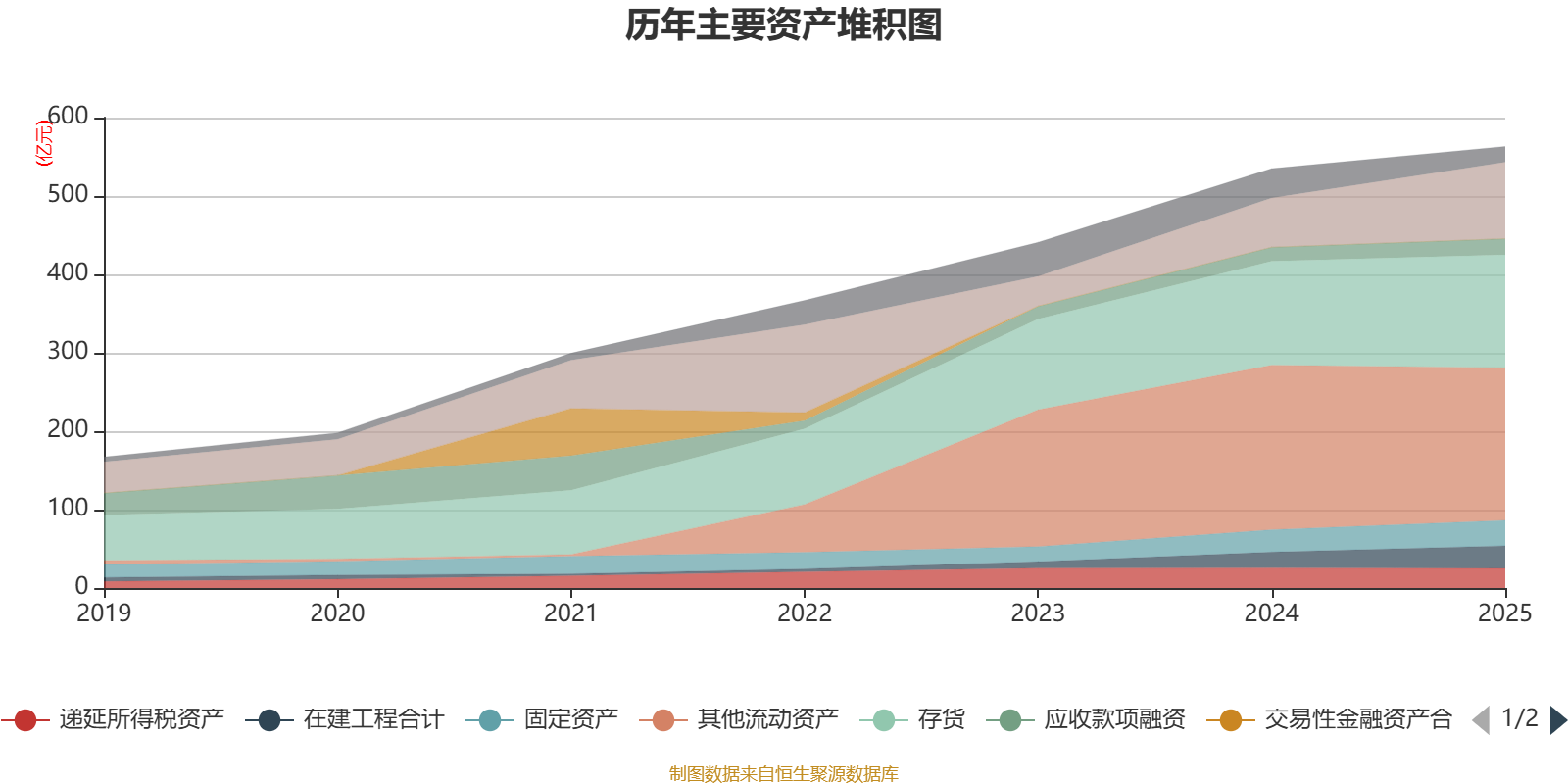 资产重大变化方面,截至2025年末,公司货币资金较上年末增加55.41%,占公司总资产比重上升5.59个百分点;其他流动资产较上年末减少7.24%,占公司总资产比重下降4.67个百分点;一年内到期的非流动资产较上年末减少100%,占公司总资产比重下降2.97个百分点;在建工程合计较上年末增加42.2%,占公司总资产比重上升1.33个百分点。