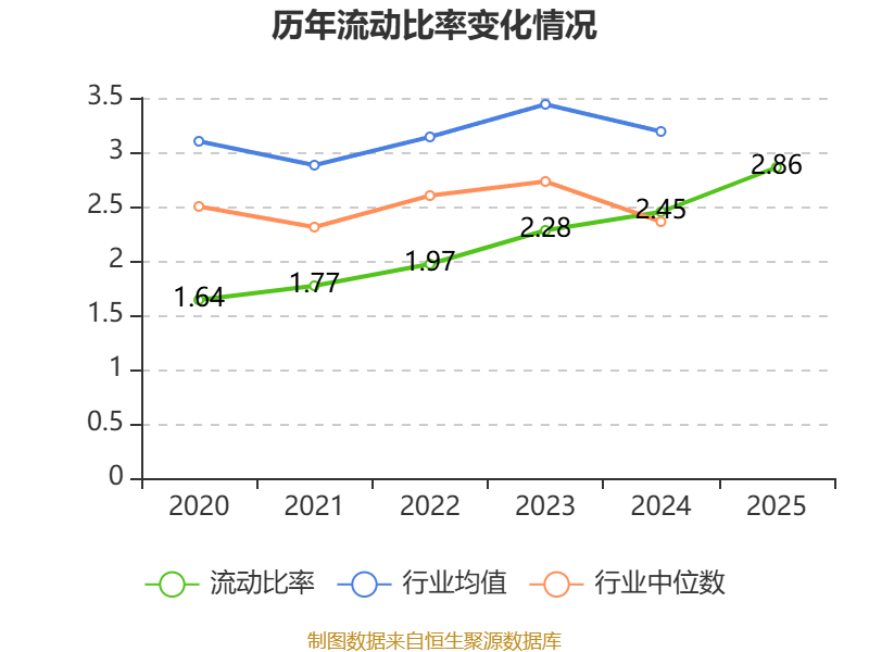 2025年,公司流动比率为2.86,速动比率为1.96。