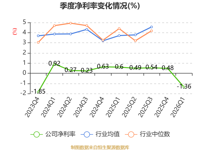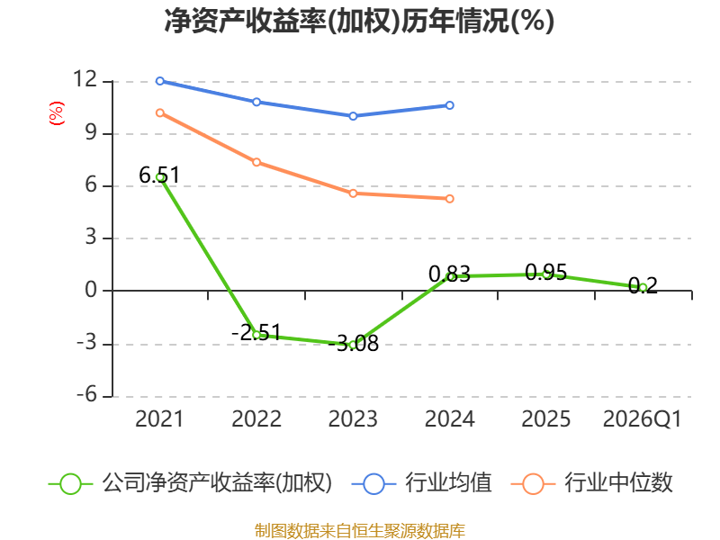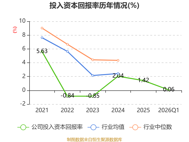 盈利能力方面, 2026年一季度公司加权平均净资产收益率为0.2%,同比下降0.03个百分点。公司2026年第一季度投入资本回报率为0.06%,较上年同期下降0.28个百分点。