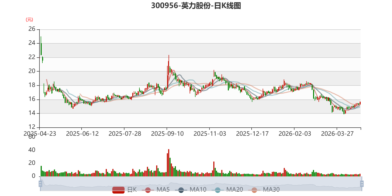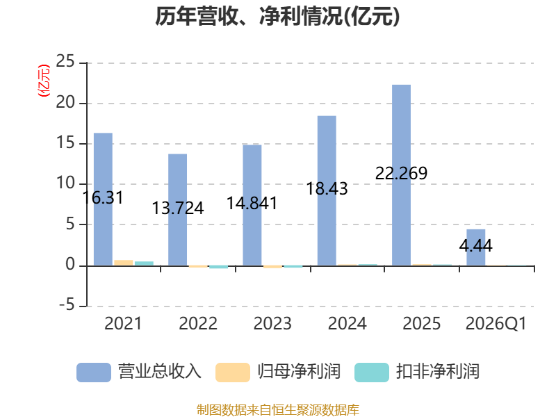 中证智能财讯英力股份(300956)4月23日披露2026年第一季度报告。公司实现营业总收入4.44亿元,同比下降0.52%;归母净利润亏损568.19万元,上年同期盈利314.84万元;扣非净利润亏损628.25万元,上年同期盈利272.92万元;经营活动产生的现金流量净额为1.35亿元,同比增长49.55%;报告期内,英力股份基本每股收益为-0.03元,加权平均净资产收益率为0.20%。