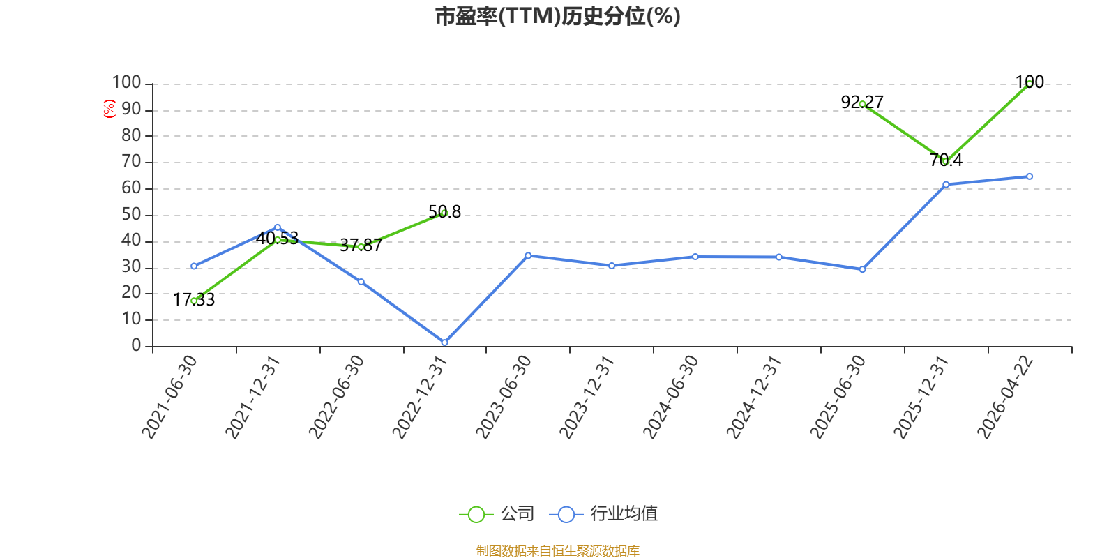 市盈率、市净率为负时,不显示当期分位数,会导致折线图中断。