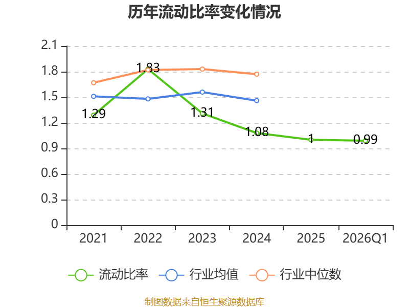2026年第一季度,公司流动比率为0.99,速动比率为0.65。