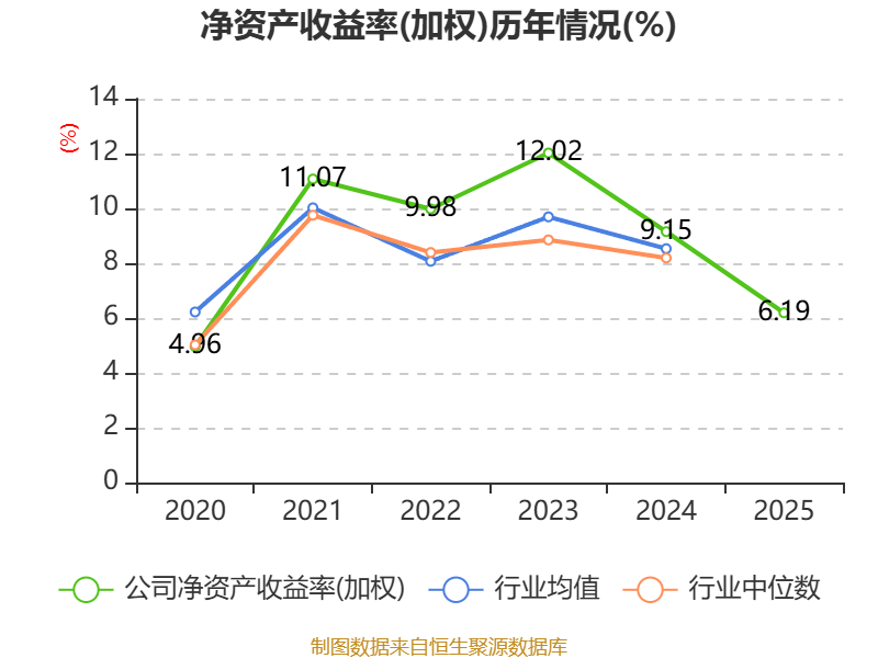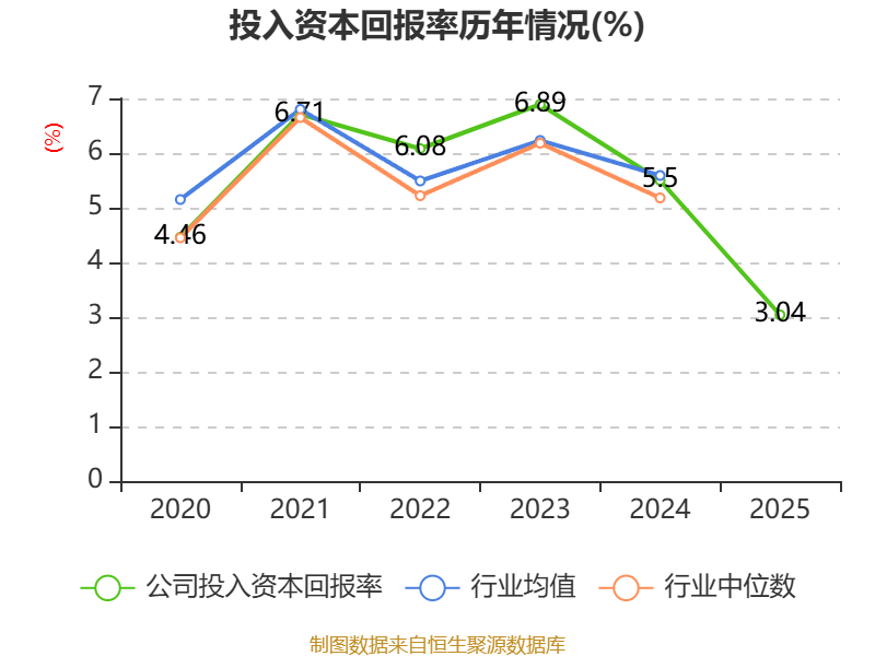 数据显示,2025年公司加权平均净资产收益率为6.19%,较上年同期下降2.96个百分点。公司2025年投入资本回报率为3.04%,较上年同期下降2.46个百分点。