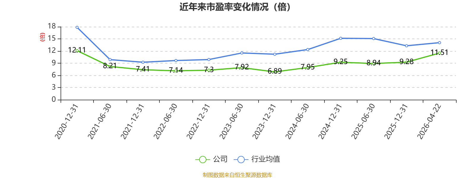 以4月22日收盘价计算,楚天高速目前市盈率(TTM)约为11.51倍,市净率(LF)约0.7倍,市销率(TTM)约0.95倍。