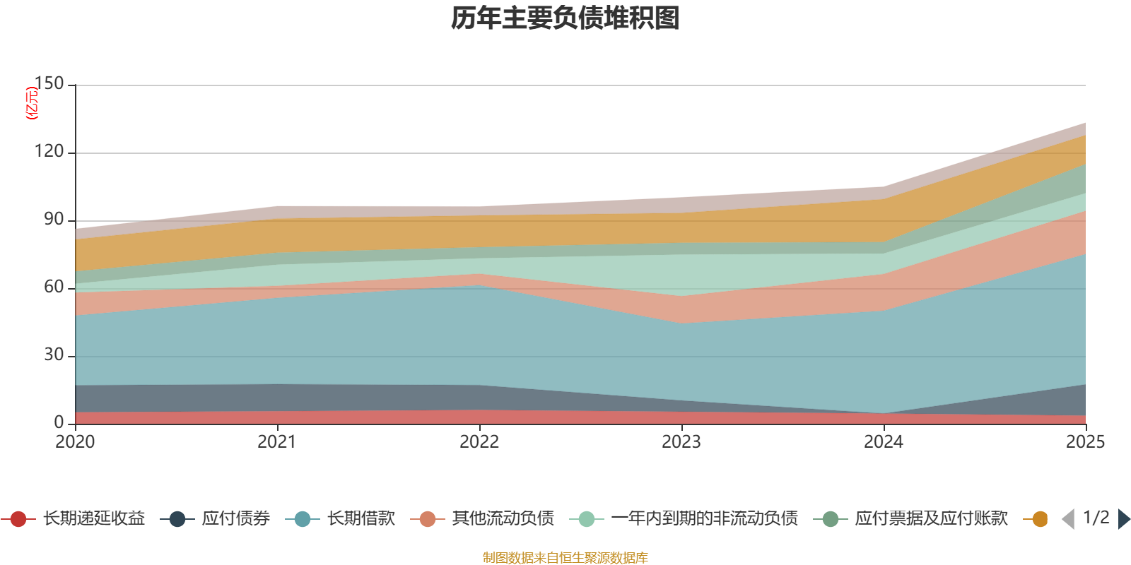 负债重大变化方面,截至2025年末,公司应付债券占公司总资产的5.74%,上年末为0;短期借款较上年末减少32.64%,占公司总资产比重下降3.9个百分点;应付票据及应付账款较上年末增加152.97%,占公司总资产比重上升2.88个百分点;长期借款较上年末增加26.79%,占公司总资产比重上升1.92个百分点。