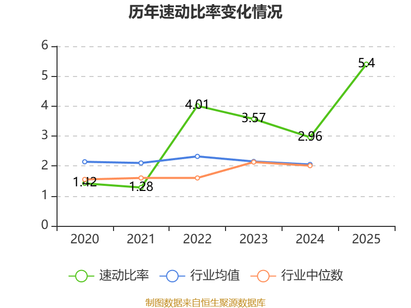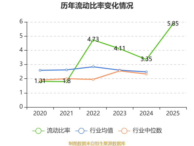 2025年,公司流动比率为5.85,速动比率为5.4。