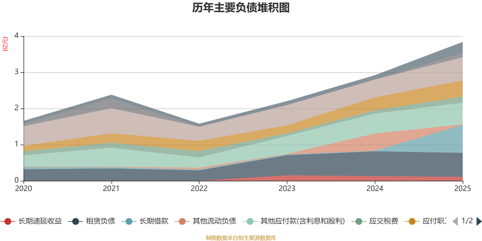 负债重大变化方面,截至2025年末,公司其他流动负债较上年末减少97.21%,占公司总资产比重下降3.74个百分点;长期借款较上年末增加5292.81%,占公司总资产比重上升3.67个百分点;租赁负债较上年末减少3.26%,占公司总资产比重下降2.23个百分点;其他应付款(含利息和股利)较上年末增加8.75%,占公司总资产比重下降1.47个百分点。