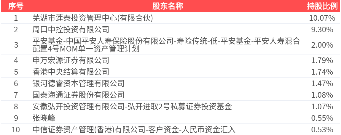 公司股东户数为15.21万户,前十大股东持股数量为5.31亿股,占总股本比例为29.59%,前十大股东持股情况如下: