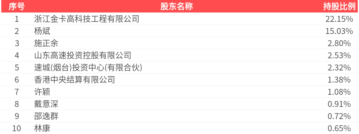 公司股东户数为2.22万户,前十大股东持股数量为2.07亿股,占总股本比例为49.57%,前十大股东持股情况如下: