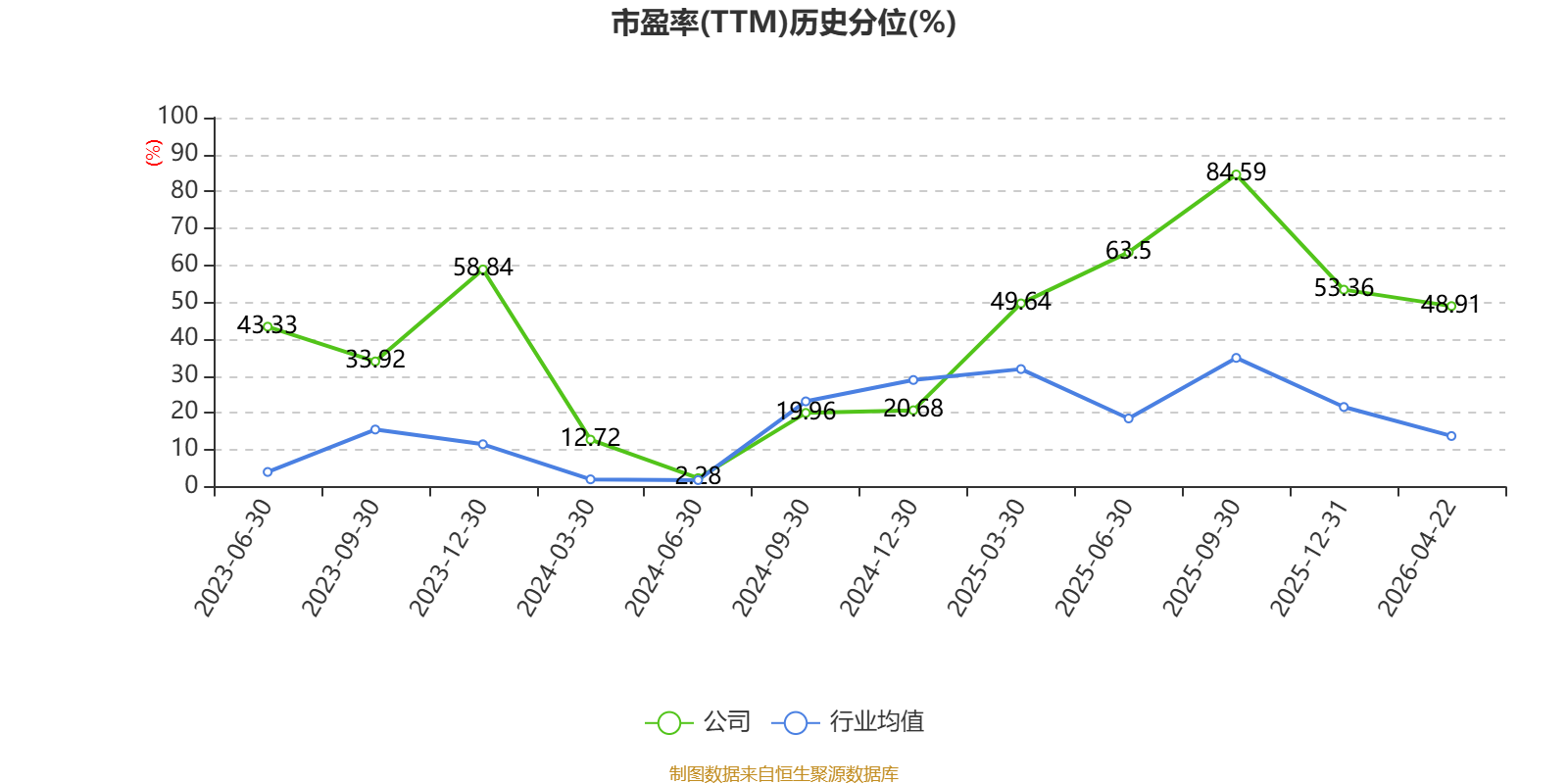 市盈率、市净率为负时,不显示当期分位数,会导致折线图中断。
